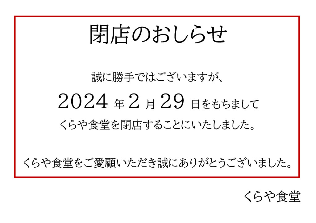 残り数日となりますが、くらや食堂に是非ご来店いただけますと幸いです。