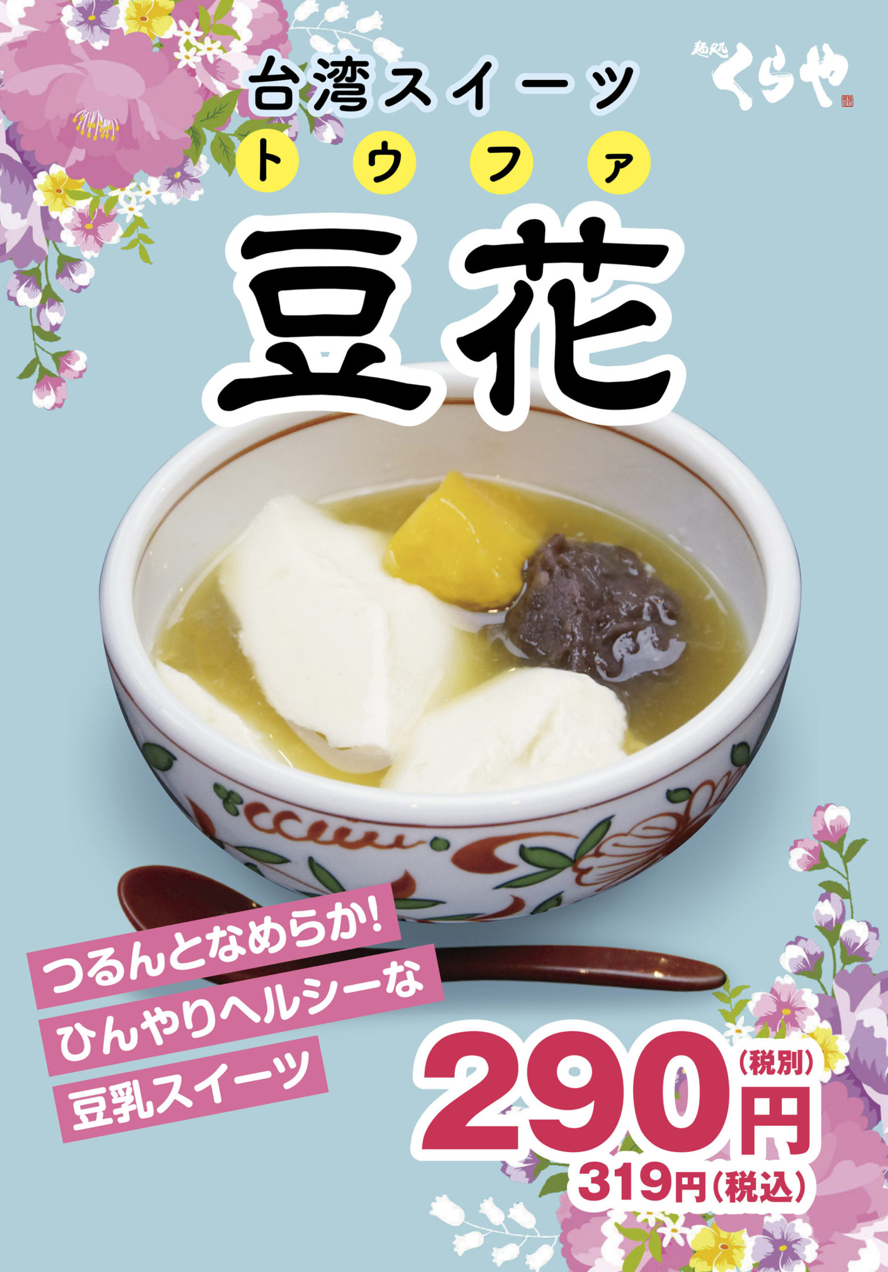 麺処くらや吉富店にて台湾の定番スイーツ「豆花(トウファ)」の発売を開始しました。